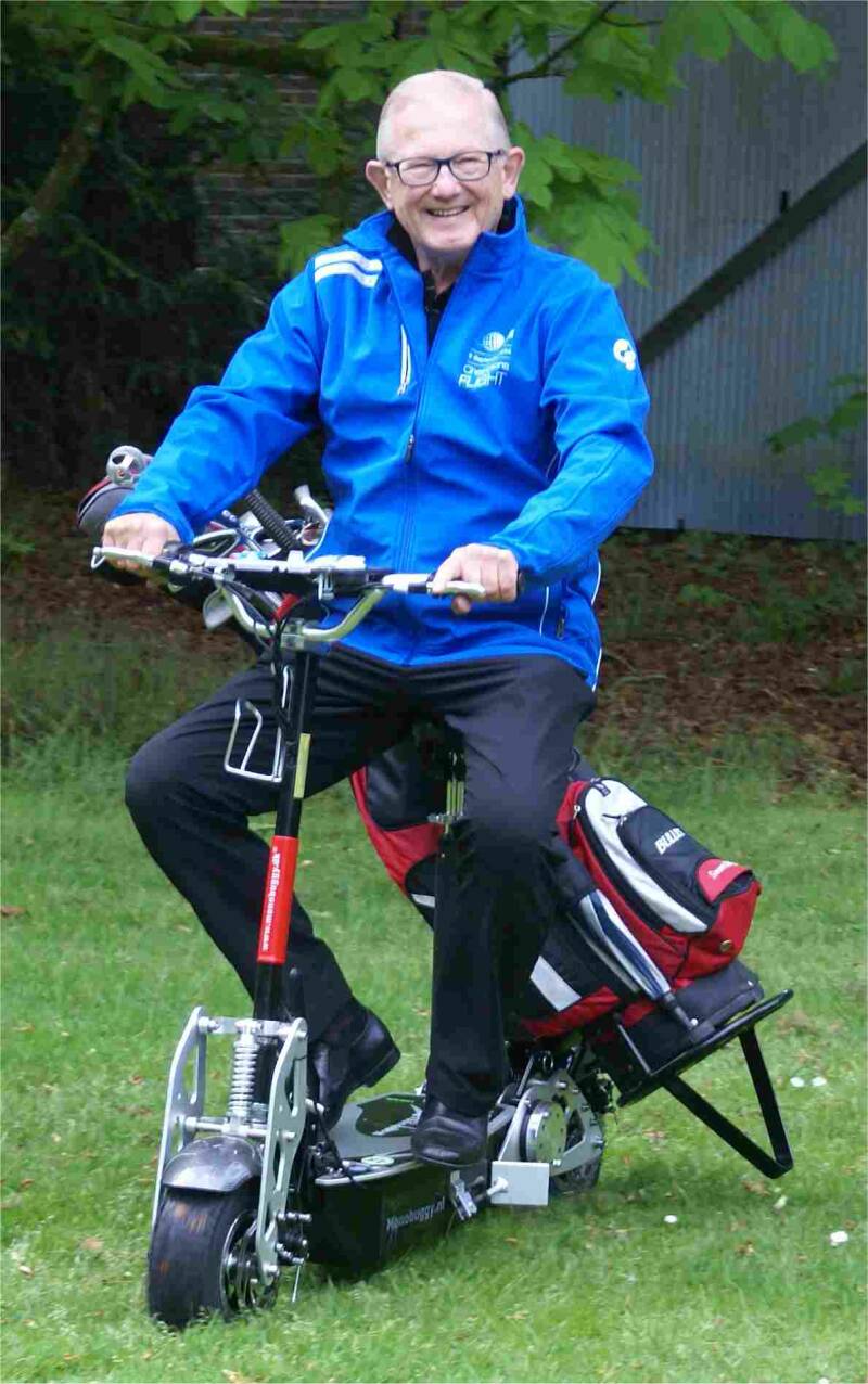 Hij heeft een MONOBUGGY golf scooter aangeschaft nadat wij deze enkele keren in de tuin van paleis 't Loo mochten demonstreren.