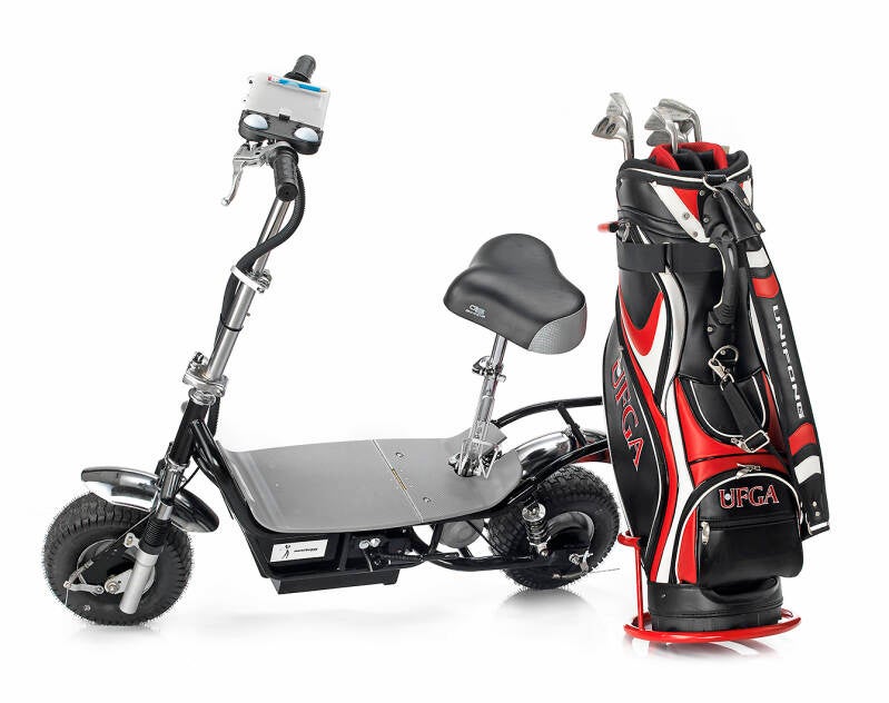 compleet met 48 volt Lithium-Ion accu, lader, golftasrek, scorekaarthouder, flessenhouder.